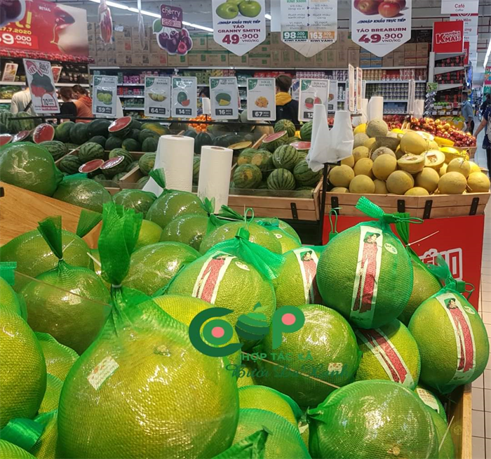 Thương hiệu Bưởi "CÔ GÁI BƯỞI HỒNG" của Hợp tác xã Nông nghiệp Bưởi da xanh Bến Tre tại siêu thị lớn Việt Nam